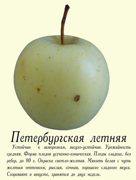 характеристики яблок Петербургская летняя