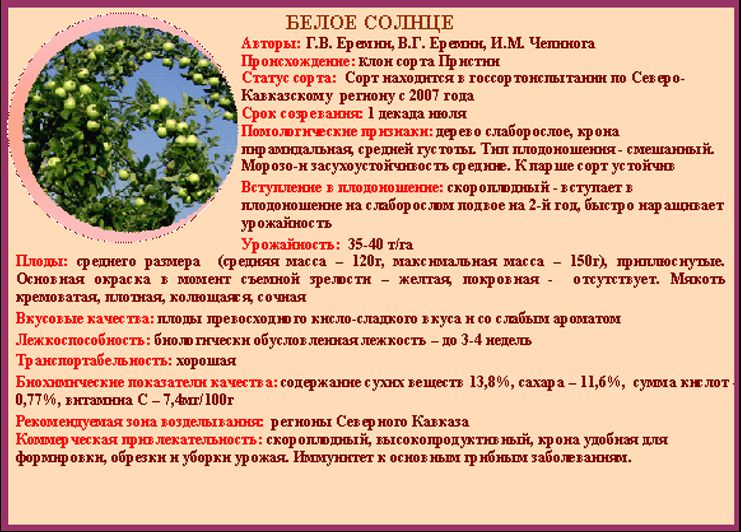 характеристики яблок Белое солнце