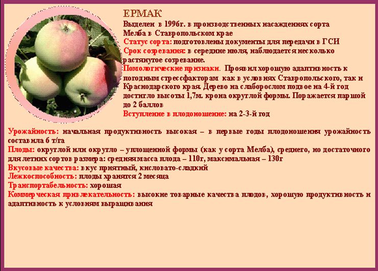 характеристики яблок Ермак