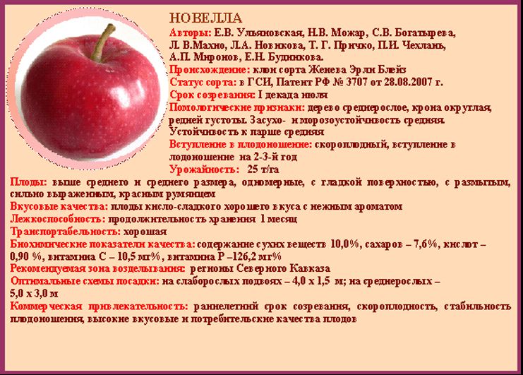 характеристики яблок Новелла