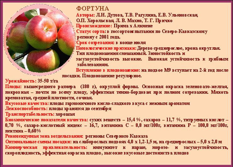 характеристики яблок Фортуна
