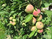 вкус яблок: кисло-сладкий окраска мякоти плода: желтая размер плода: средние (от 100 до 200г) форма яблока: приплюснутая время созревания: средне-летний возраст плодоношения: от 5 до 7 лет устойчивость к зиме: высокая крона дерева: среднерослые лежкость: низкая способы применения: универсальный еще характеристики |