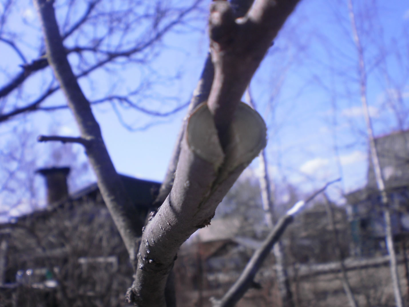 На подвое выбираем ветку, растущую вверх. Чем вертикальнее расположена ветка, тем больше гарантий успешной прививки. Если все же приходится делать прививку на горизонтальной ветке, то ее надо подвязать, направив как можно сильнее вверх, и, как только черенок приживется, подвязку снять.