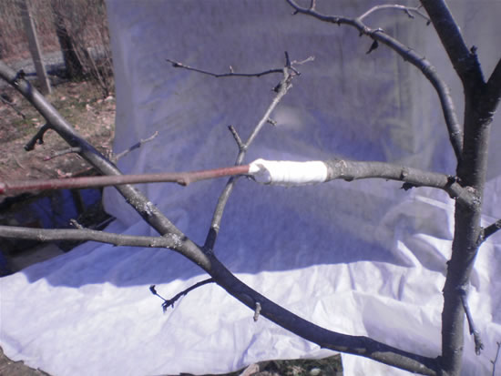 И туго внахлест обматываем изолентой, закрывая все место прививки.