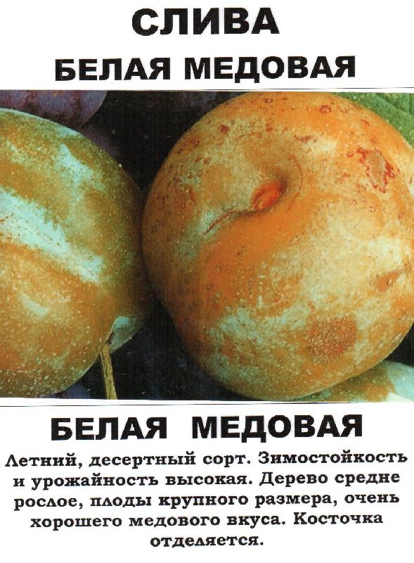 Важно: Мы не занимаемся продажей саженцев сливы Белая медовая. Купить семена можно в одном из магазинов, например в