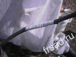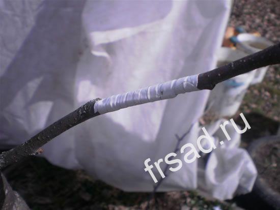 Черенки, заготовленные осенью, связывают в небольшие пучки, оборачивают мелкой синтетической или металлической сеткой для защиты от мышей и присыпают землей. Лучше всего прикапывать их с северной стороны какого-либо строения, где снег лежит дольше, но не застаивается вода. Можно хранить черенки в ящиках, пересыпав их влажными опилками, на открытом воздухе, но, засыпав их слоем снега 50-70 см.